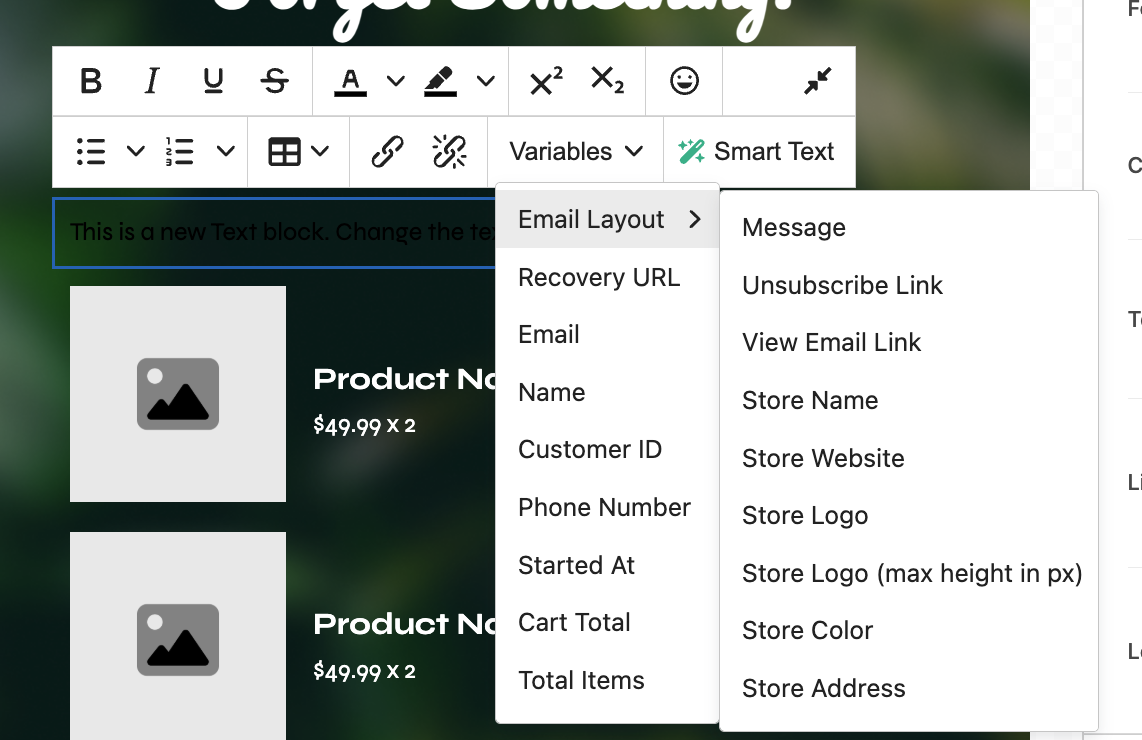 A wide variety of Variables are also available so you can make your emails exactly as you desire.