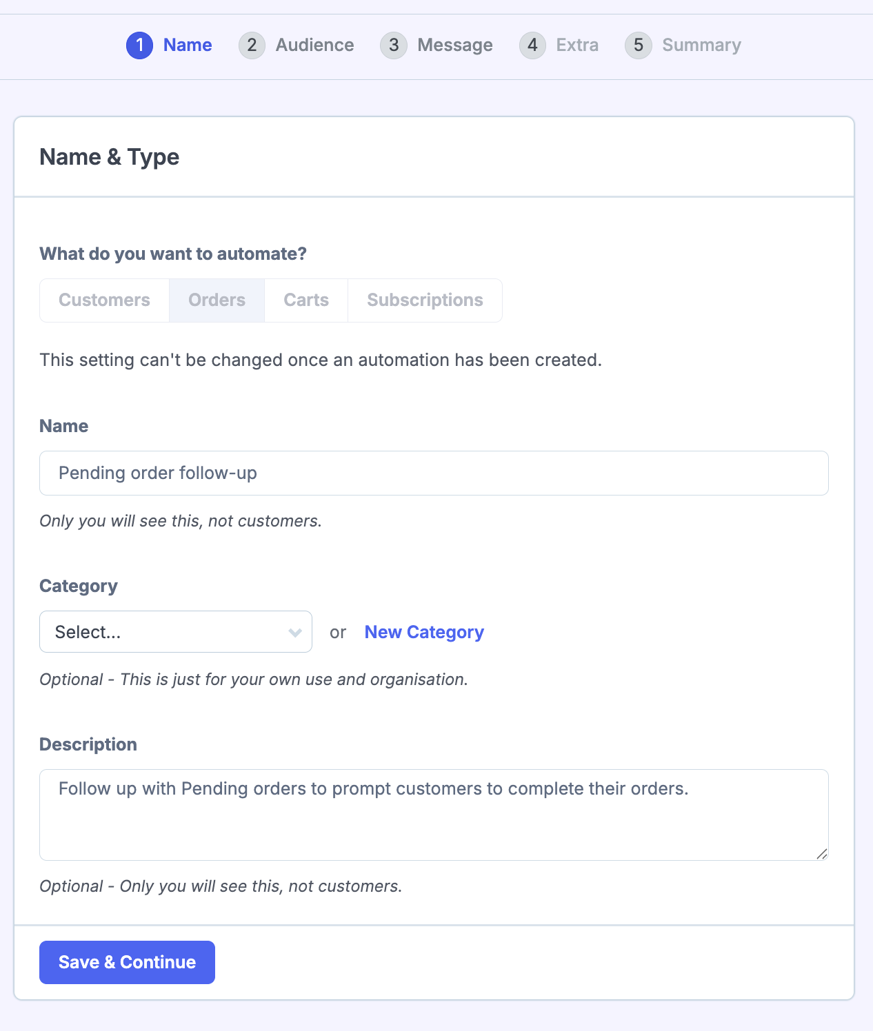 1. Create an orders automation - https://app.metorik.com/tools/engage/automations: