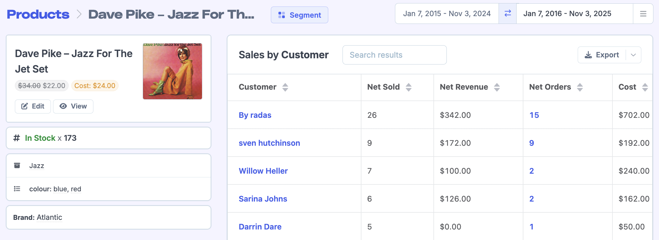 Whilst Metorik doesn't currently have a repurchase rate report, there is the option to see how many customers repurchased a product using the Segmenting Tool