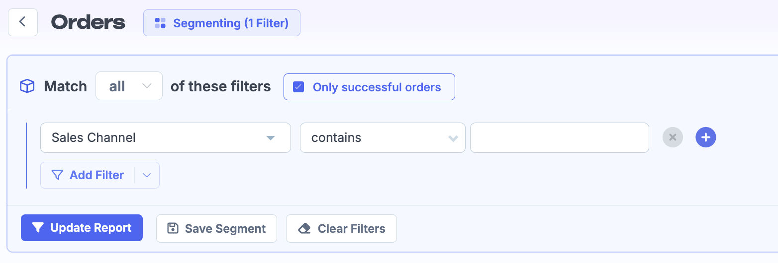 You can select one or multiple channels to filter the entire report, which is useful for viewing stats for each sales channel separately.