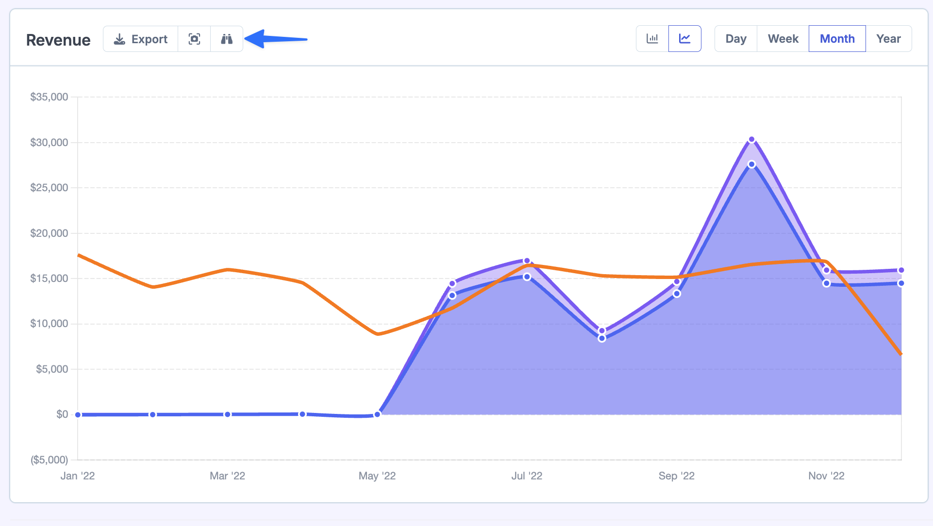 You will see a magic wand button in most charts in Metorik. This wand indicates that the chart is able to be forecasted. All you need to do is click the button, and Metorik will create a forecast based on the current data in the chart: