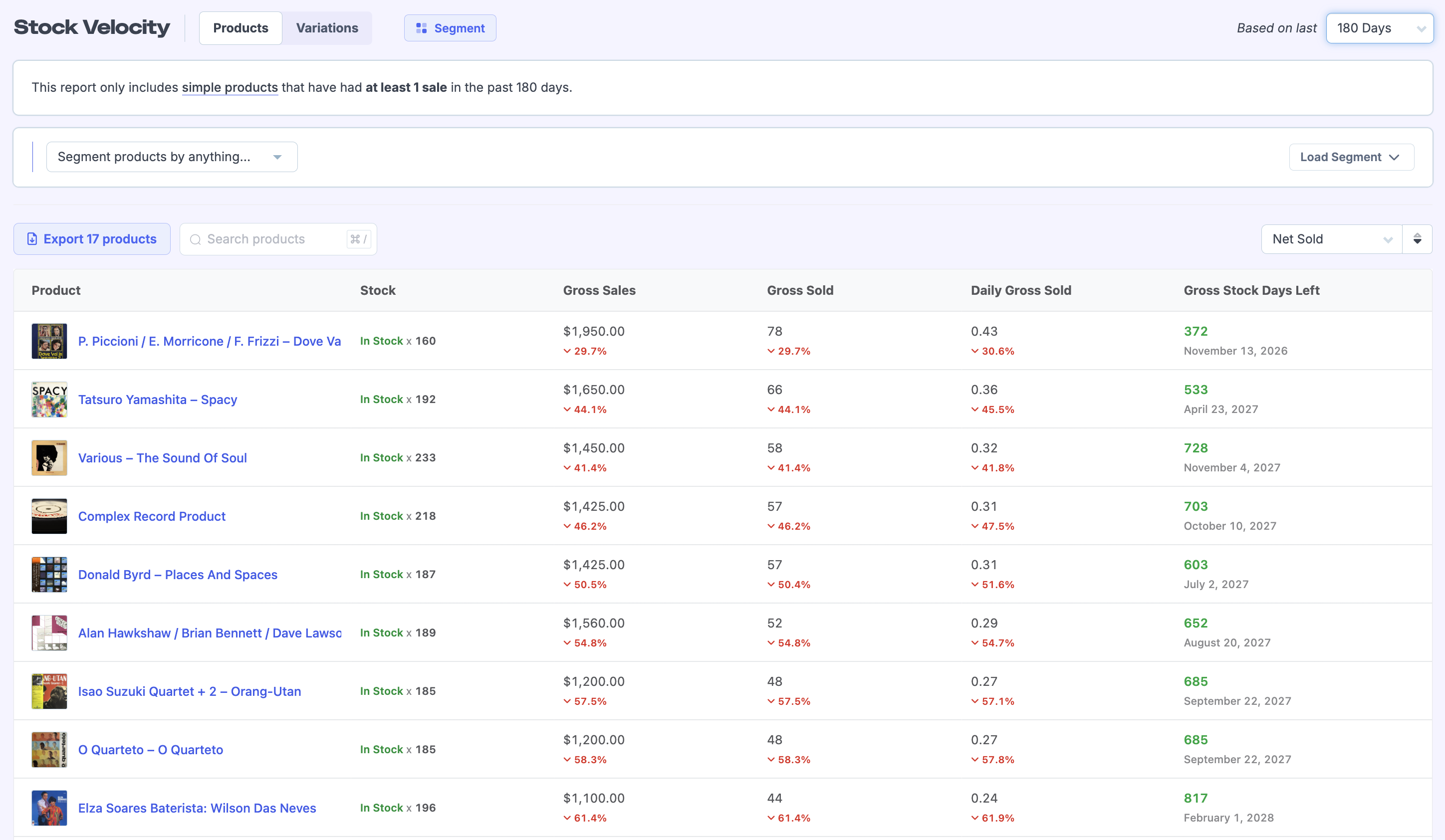 With this information, you can make key decisions around when to order additional stock, which products are not performing, and which are exceeding expectations.