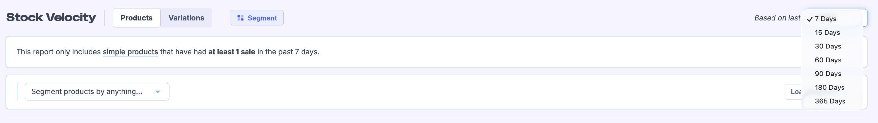 The Based on last X days dropdown in the top right corner, allows you to choose which period of sales we should use for the calculations: