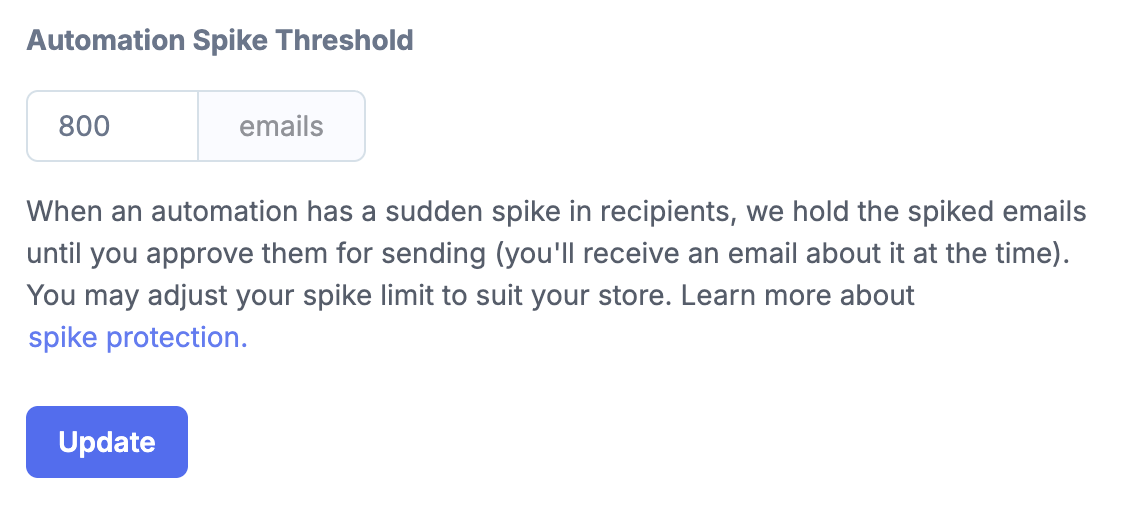 If we detect a spike, those emails will be given a failed status of Spiked automation and won't send. The automation will remain active and send to future matches.