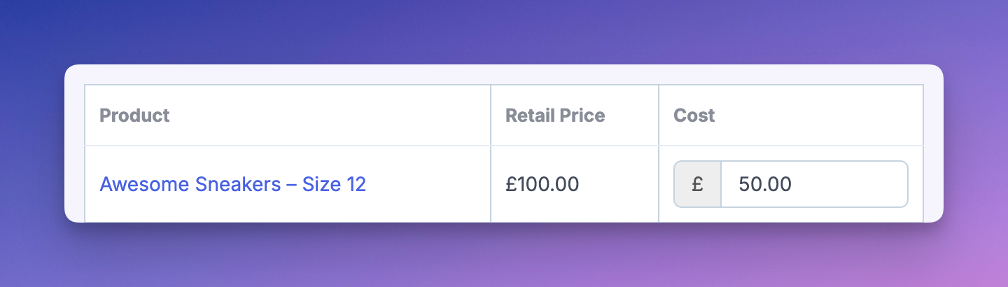 - In Metorik, you would set your product cost as £50.