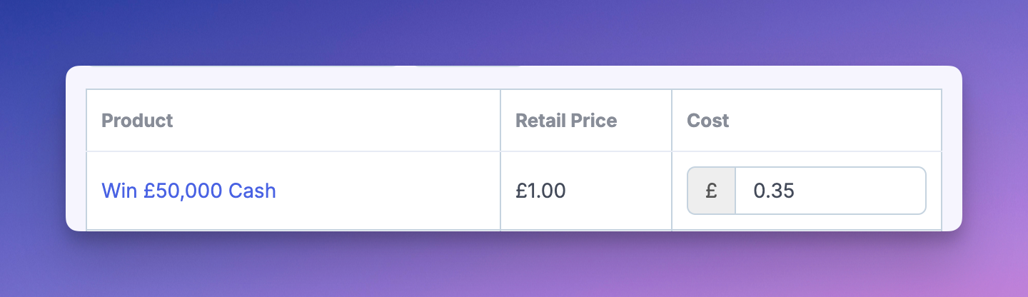 Managing Costs & Profit for Raffle or Competition Stores