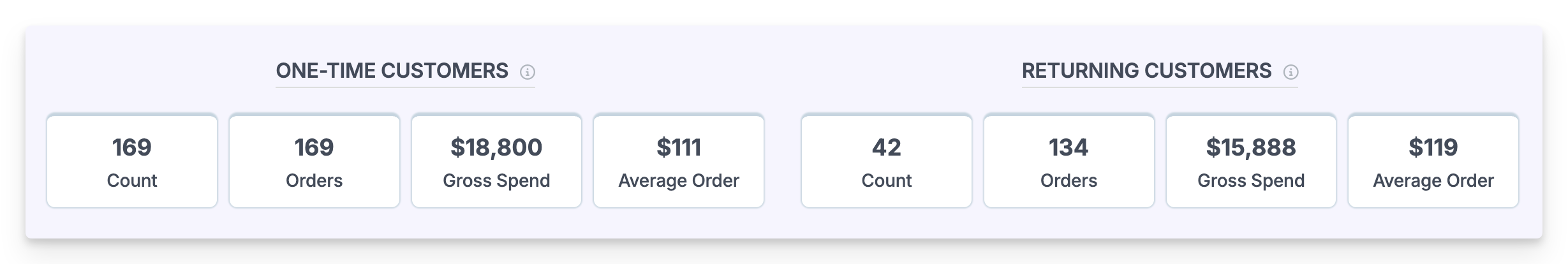 One place to see the stats on your One-Time or Returning Customers is from the Customer Retention report: https://app.metorik.com/reports/customer-retention