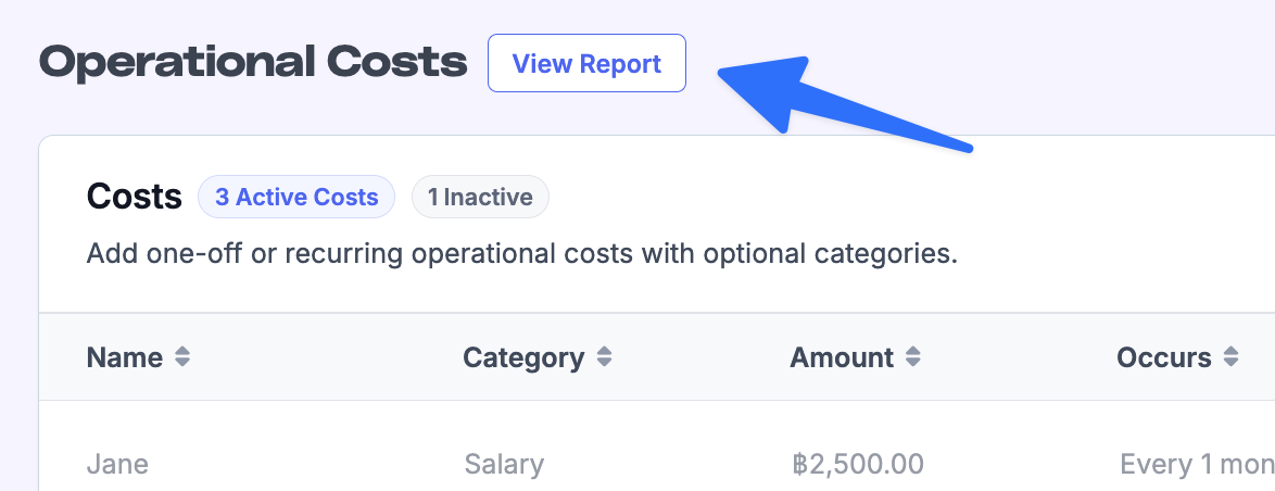Once you have set up your costs, you can view them on the Profit report, or by clicking on the View Report button at the top.