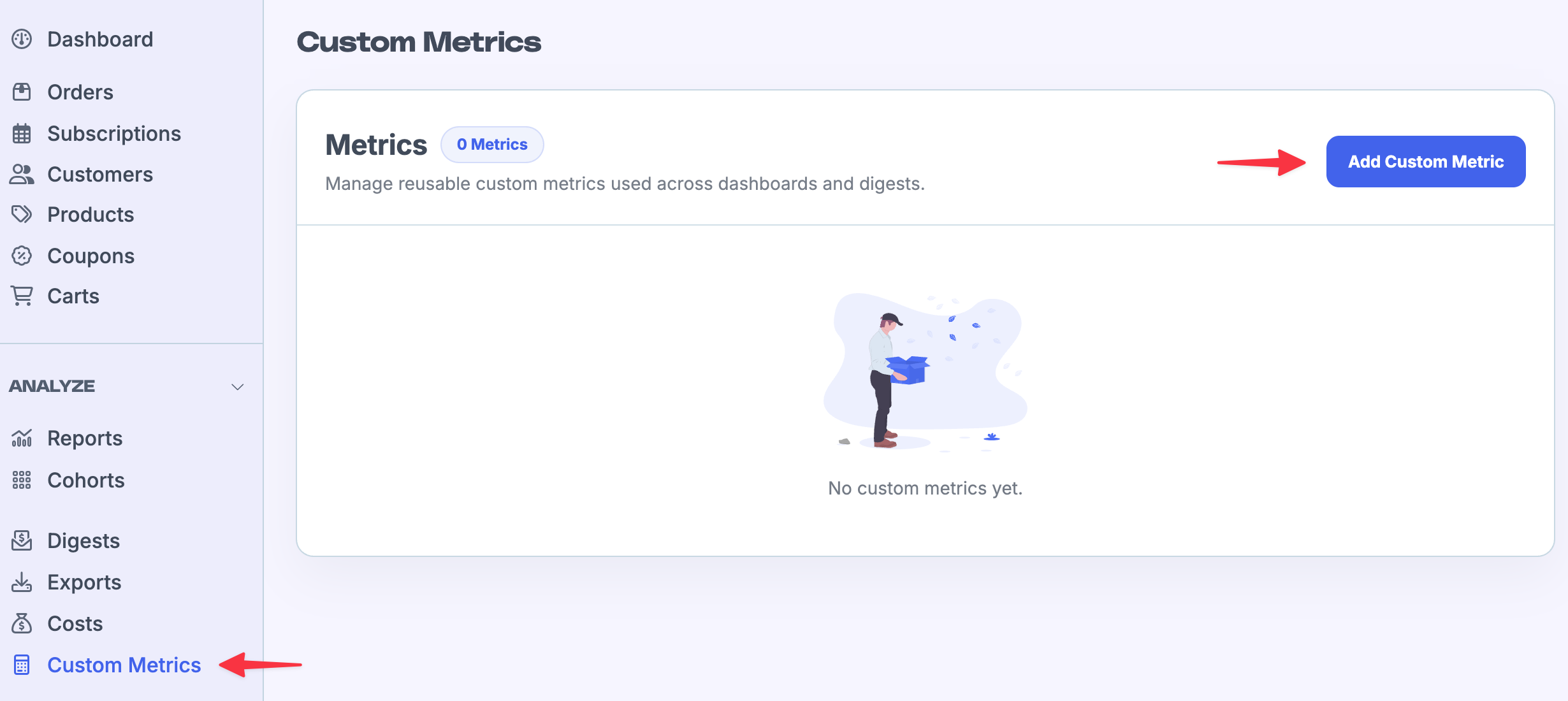 While Metorik includes hundreds of built-in metrics and KPIs, there may be times when you need to track something more specific that isnβt available out of the box. This is where Custom Metrics come in.