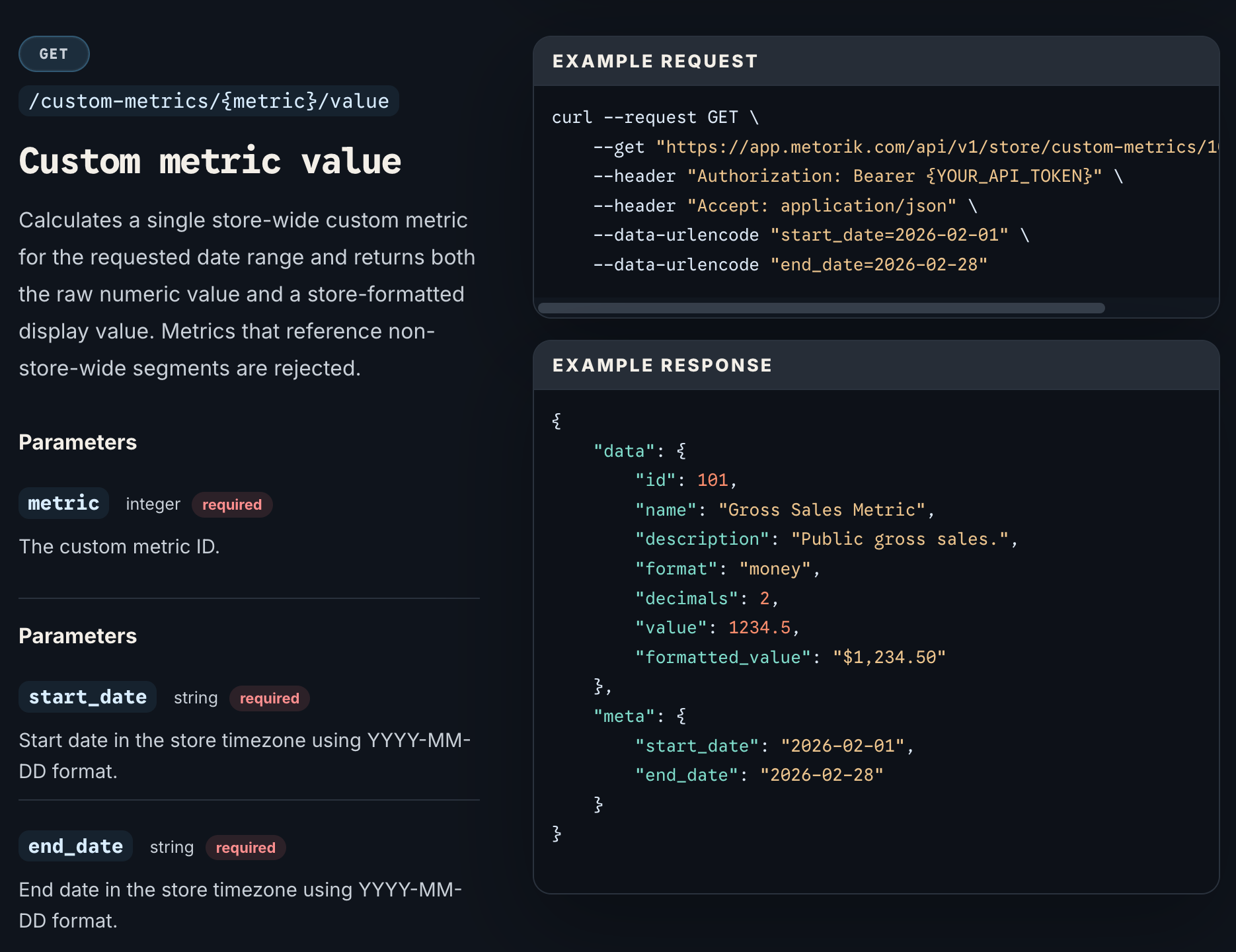 If you are need to use your Custom Metrics externally to Metorik, you can query them using the Metorik API.